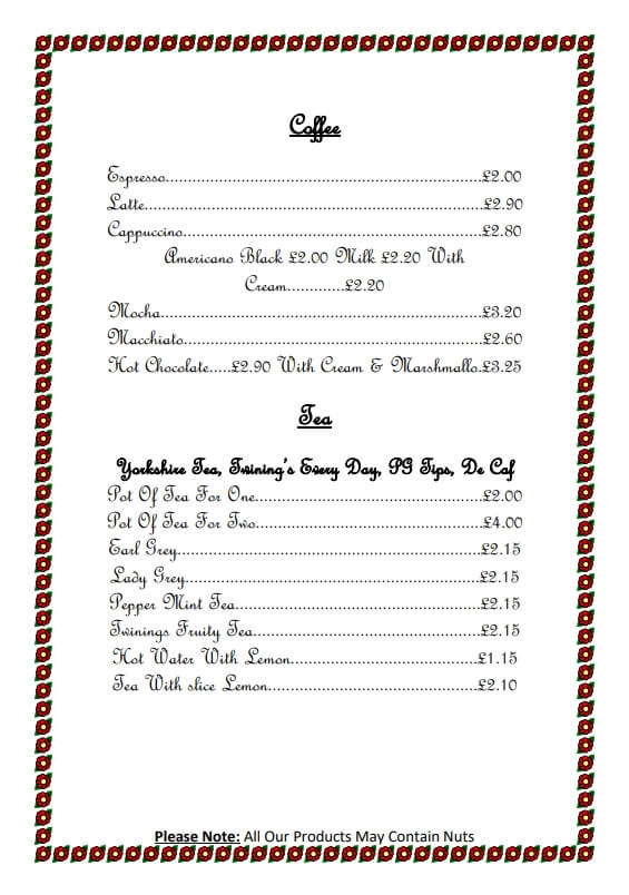 NB For any events such as a Birthday Tea, Anniversary Celebration, or just a treat for you and that special someone, please do not hesitate to call us and discuss your exact requirements, we will do our best to make your occasion a memorable one.